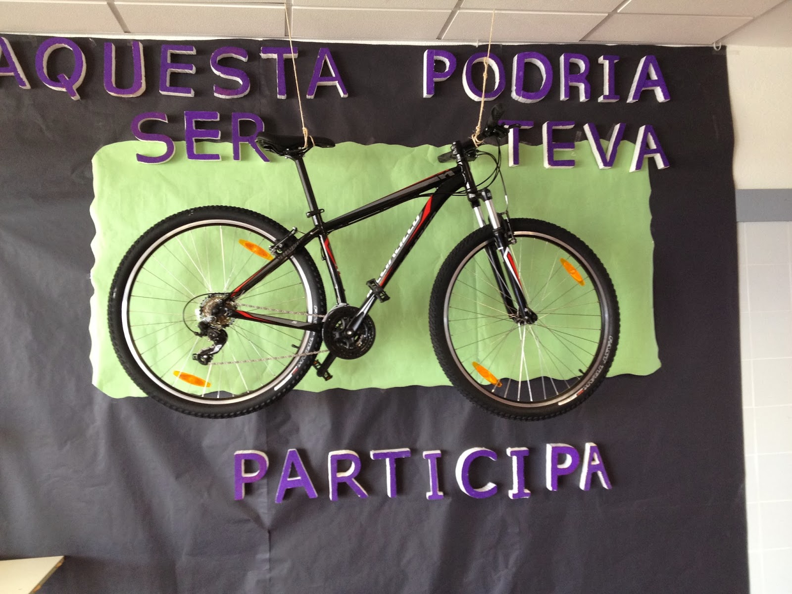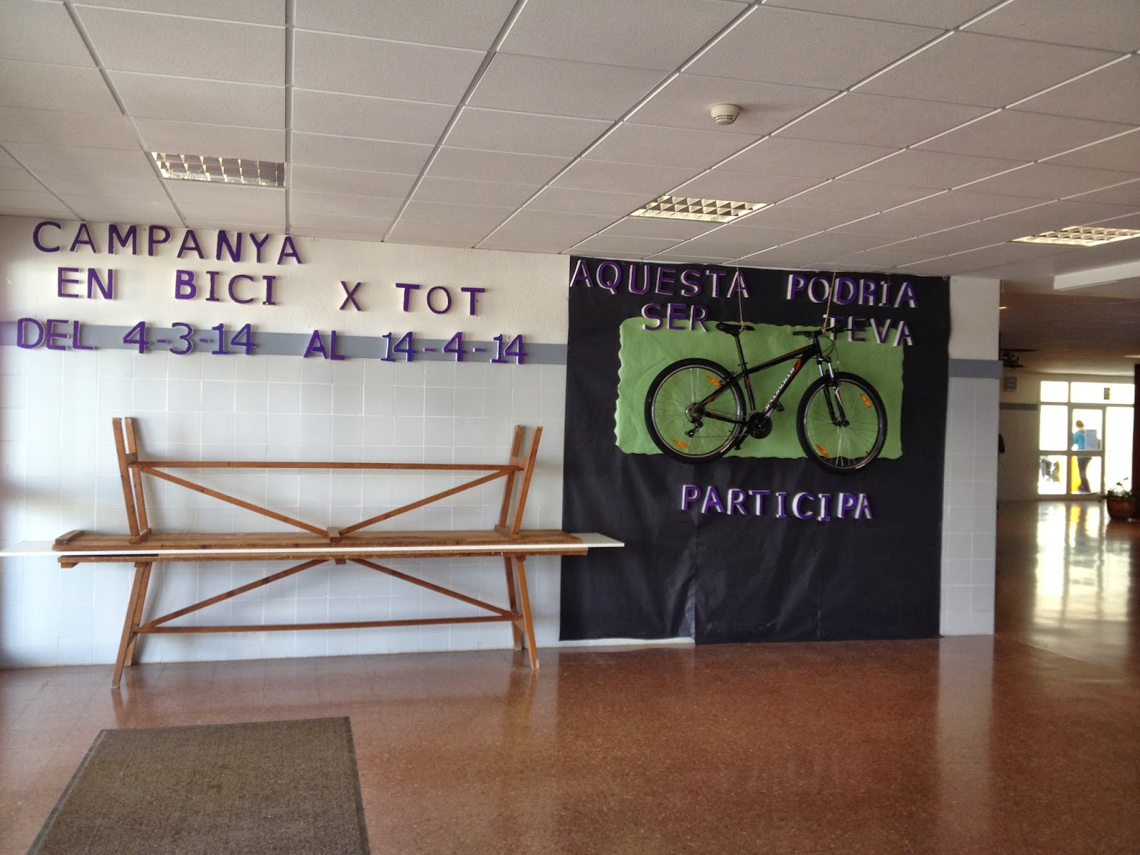 La comissió de medi ambient de l’institut ha posat en marxa una campanya per a promocionar l’ús de la bicicleta. Sortejarà la que està exposada a l’entrada entre tots els alumnes que durant el 4 de març i el 14 d’abril assisteixin al centre en bicicleta.