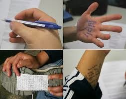 En general la manera més clàssica de copiar són les conegudes “chuletas” en diversos formats (paperets ínfims a l’estoig, al bolígraf, a una botella d’aigua, a la màniga, a les sabates…)