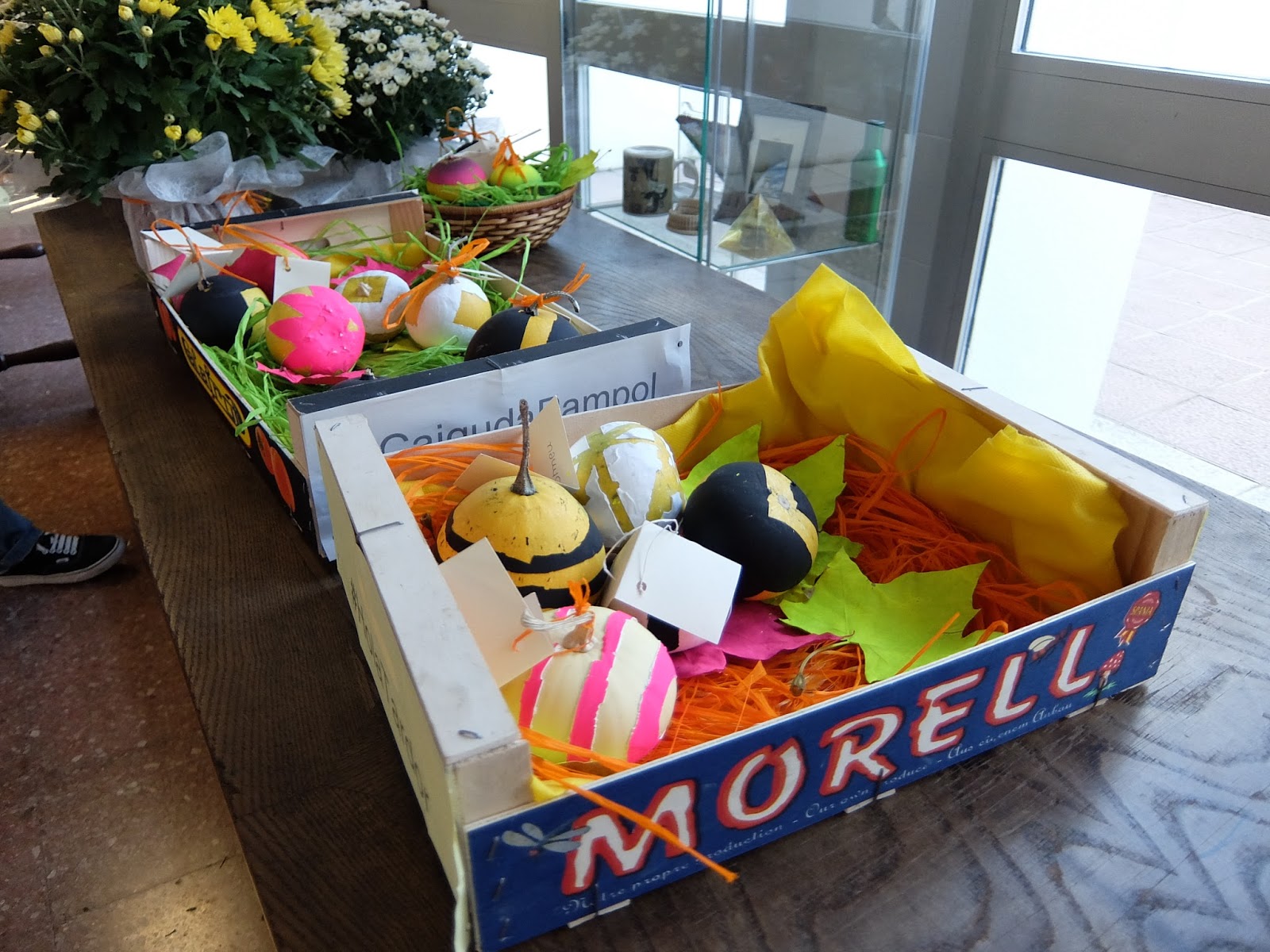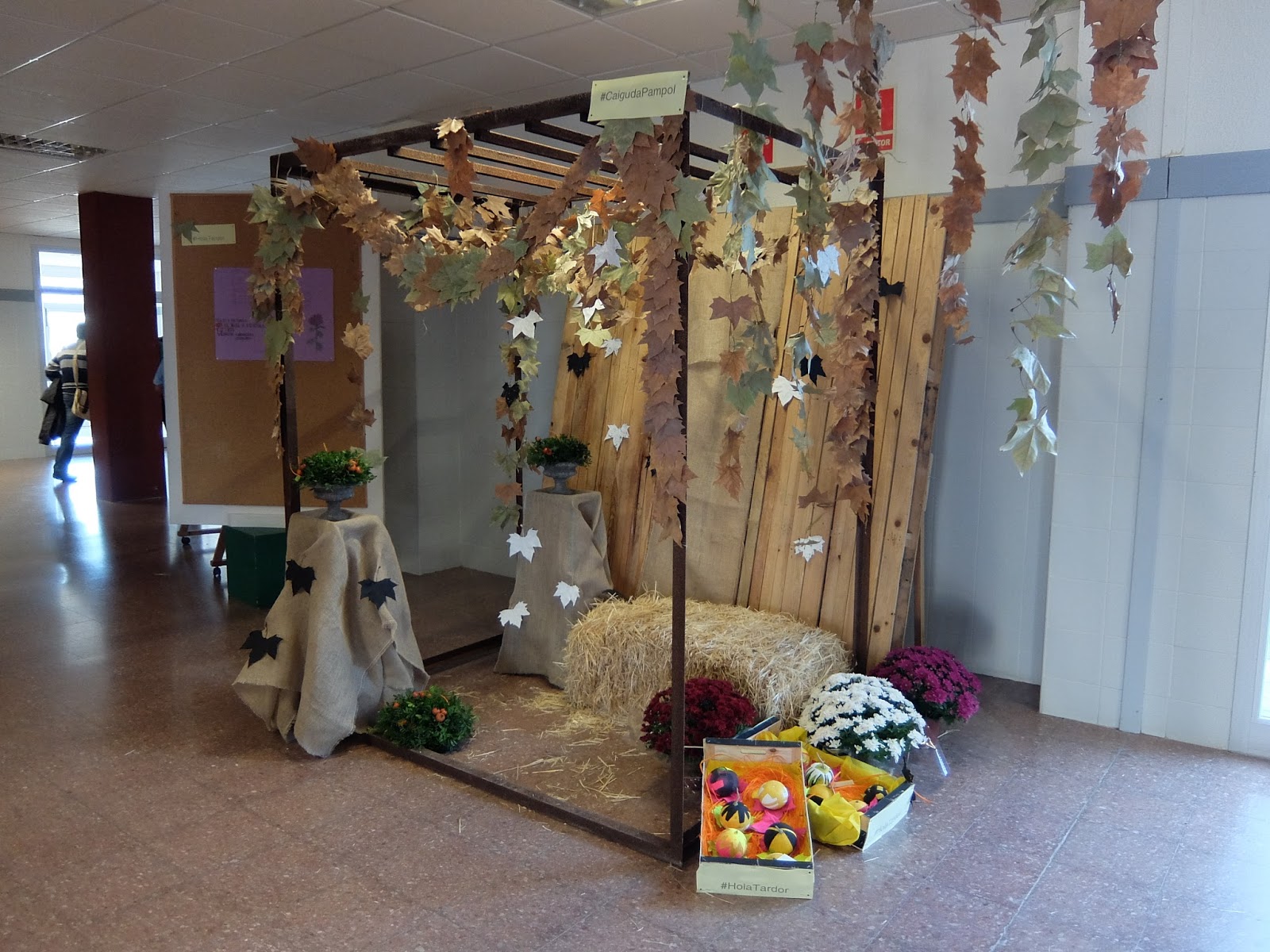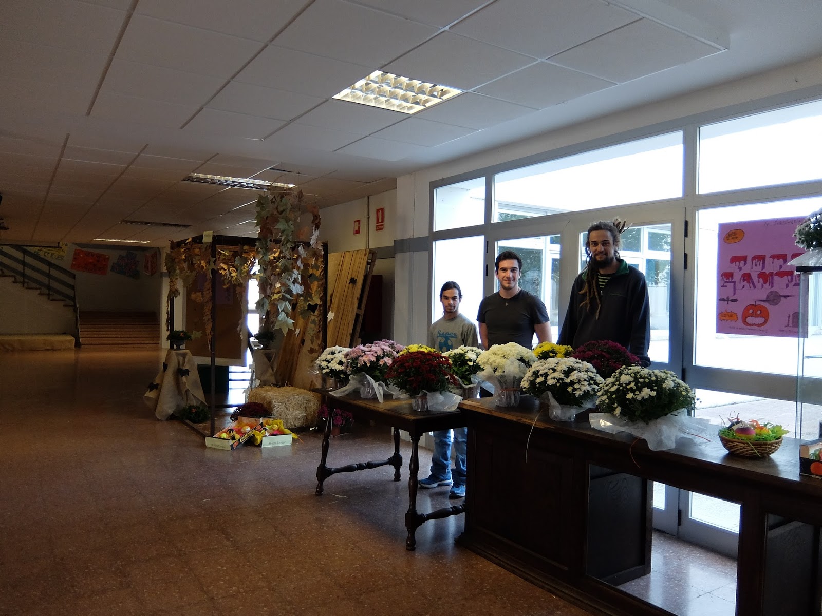 Els alumnes de segon curs del grau mitjà de jardineria tornen a fer-se presents a l’entrada de l’institut. Per una banda han muntat un racó d’acord amb la tardor i per l’altra anuncien que hi vendran productes típics de l’època: carabasses i estranys per Tots Sants. Suposam que aniran adaptant-se a la resta d’estacions de l’any i que continuaran amb la paradeta de verdures i plantes que ja ha esdevingut tradicional.