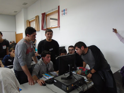 Modalitat de projectes: els alumnes Nahuel Valobra, Joan Miquel Bonet, José Carlos Salvador, Tomeu Puig I Aaron Fernández varen presentar a la resta de participants el videojoc sobre les olimpíades que havien creat.