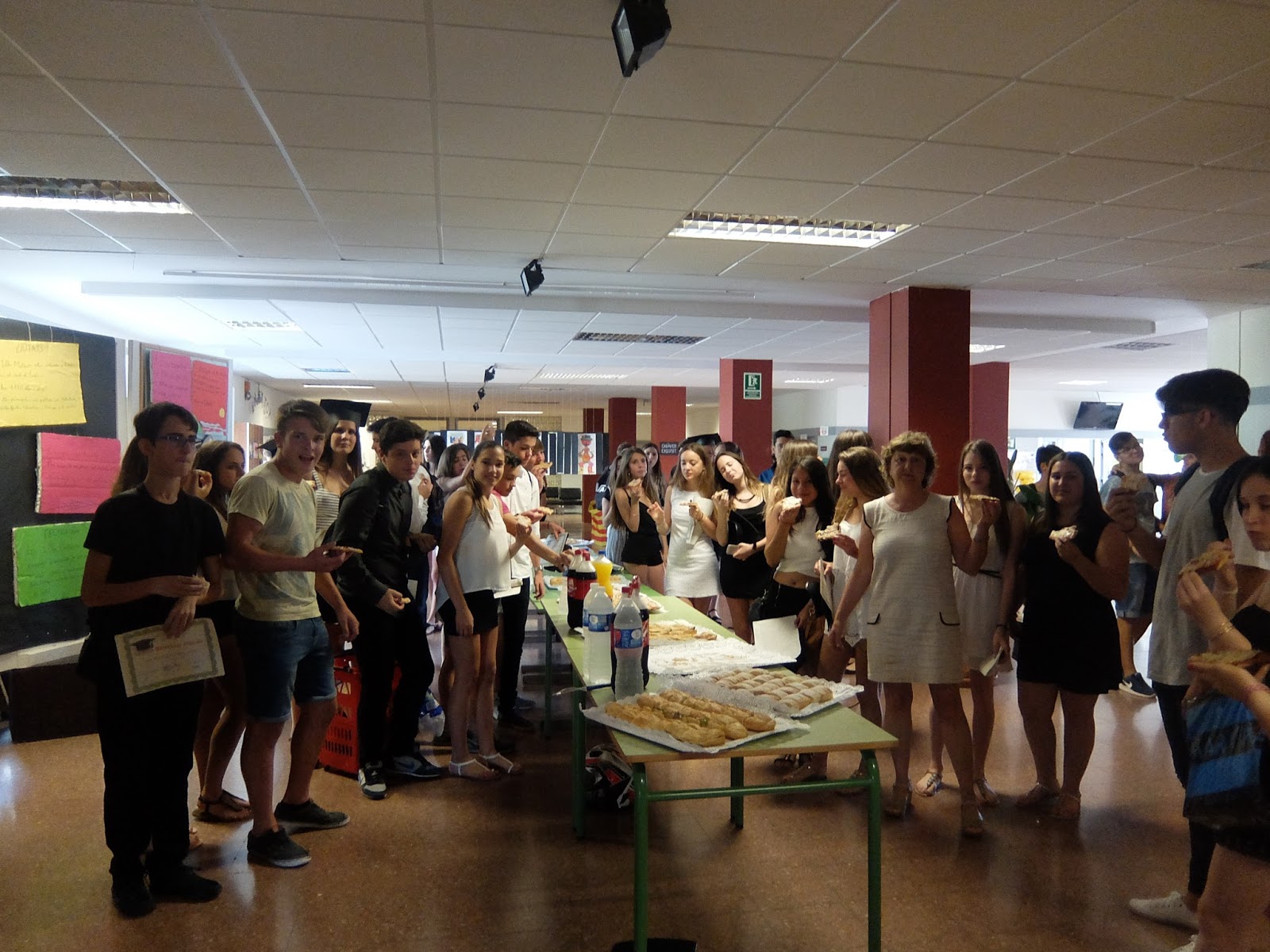 Després de la desfilada per rebre el diploma, els alumnes i els tutors i les tutores es reuniren al hall per fer una berenada tots plegats.