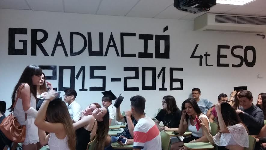 Dimarts dia 21 de juny els alumnes de 4t juntament amb els tutors i les tutores varen celebrar la seva graduació a l’aula d’audiovisuals del centre. Els mateixos alumnes havien engalanat el passadís i la tarima amb una estora vermella, estil Hollywood, per on varen passar a rebre el diploma que el director i el tutor o la tutora els varen lliurar.