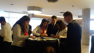 El viatge que us volem contar va començar ben prest, concretament a les 4 del matí, ja que l’avió (lowcost) sortia a les 6.30 h. I arribàrem a Barcelona devers les 7.30 h. Vam haver d’agafar el metro i, després de berenar, arribàrem a l’Auditori, on assistírem a les presentacions de les empreses que ja coneixíem virtualment. I vam tenir dues hores de Networking (relacions comercials amb la resta d’empreses participants) durant les quals vam poder realitzar compres i vendes. També aquest temps ens va servir per relacionar-nos amb altres joves administratius.