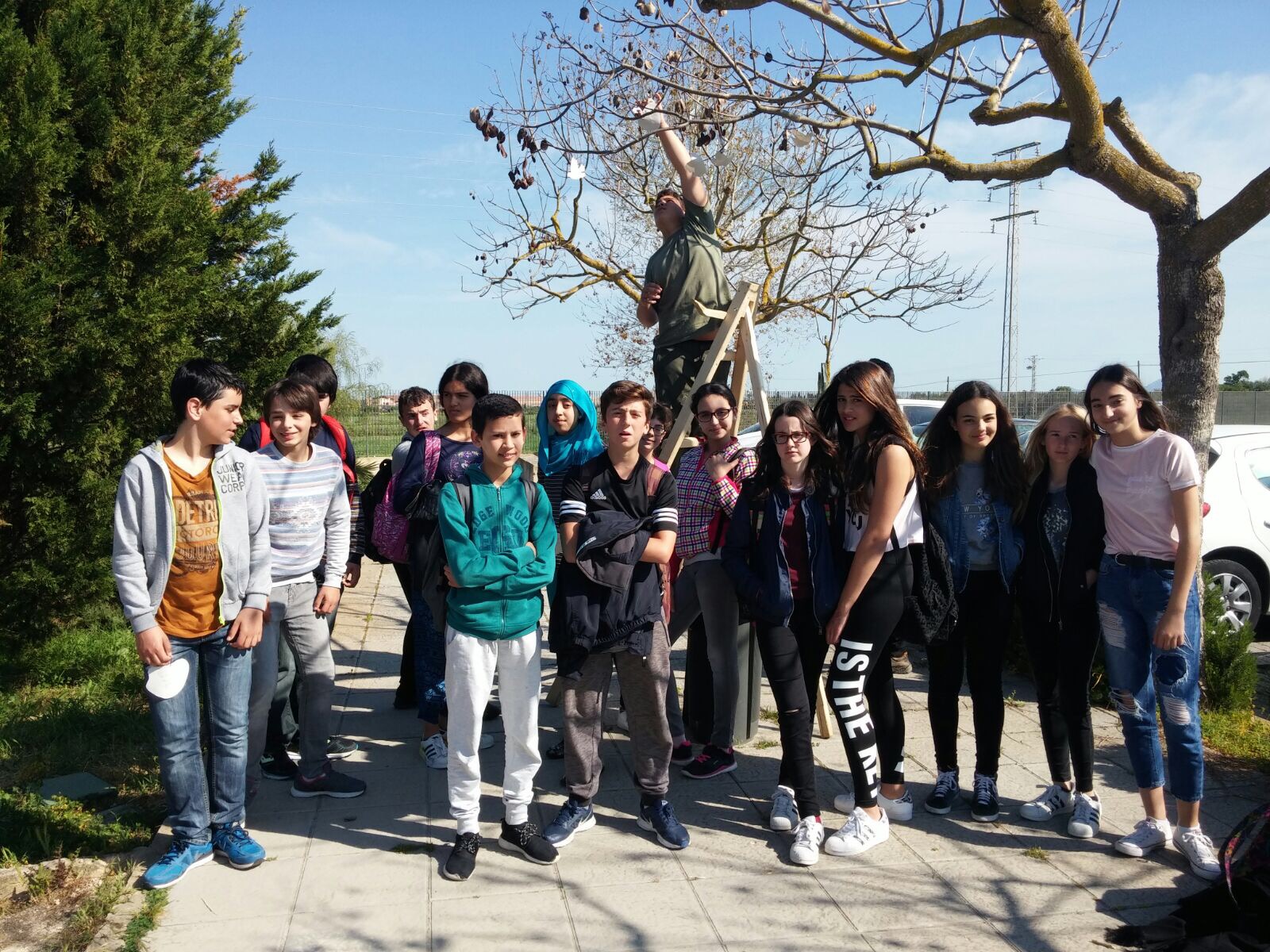 Per una altra banda, hem decorat i penjat uns coloms com a símbol de la pau, i també hem sembrat un nou arbre al nostre institut.