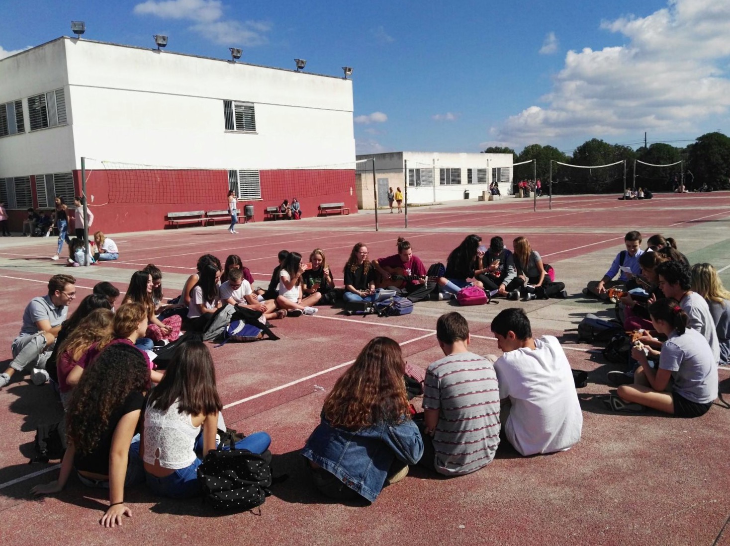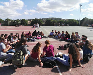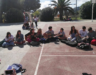A partir d’una iniciativa dels alumnes de música de 2n de Batxillerat, avui el temps del pati tothom que ha volgut ha pogut renunciar a les seves diferències ideològiques per tal de defensar el dret a la llibertat d’expressió.