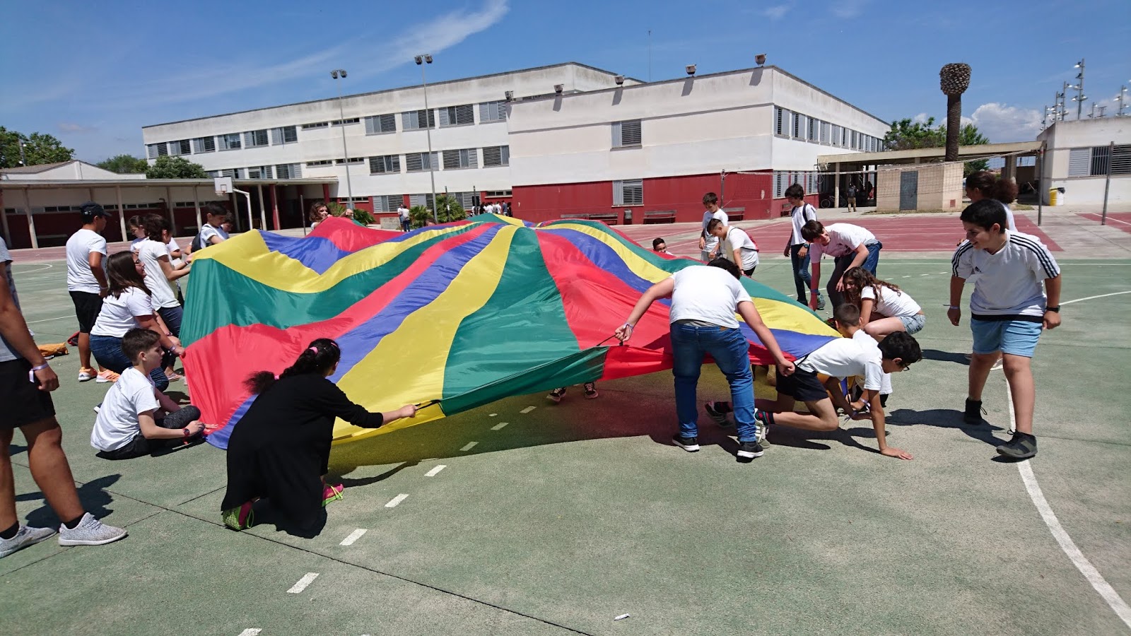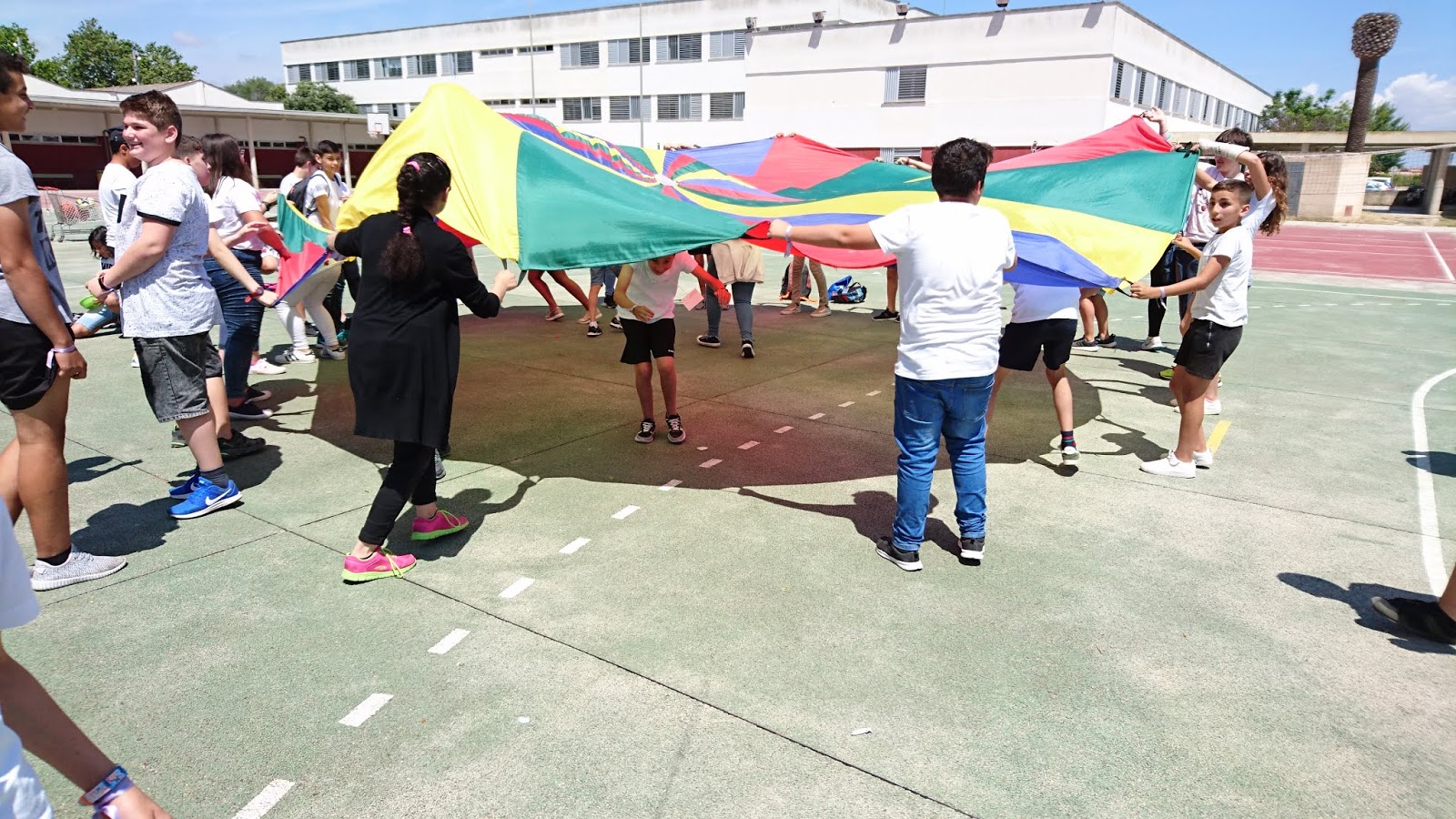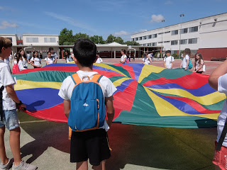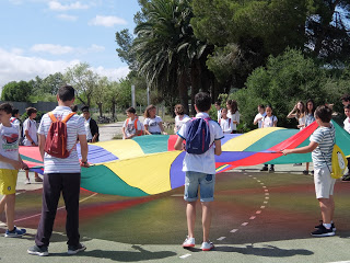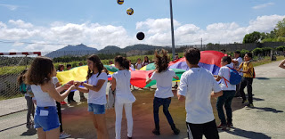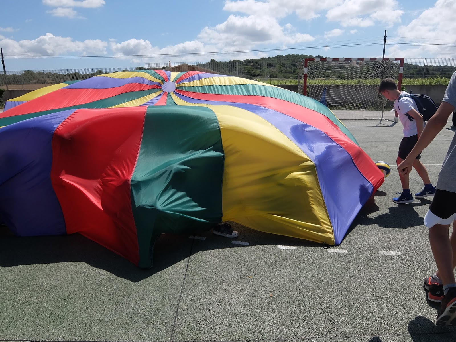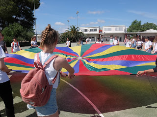 Per mostrar les pistes esportives, hi havia un joc molt divertit amb el paracaigudes.