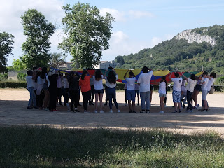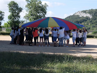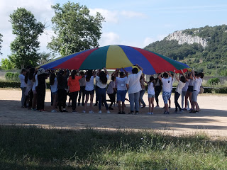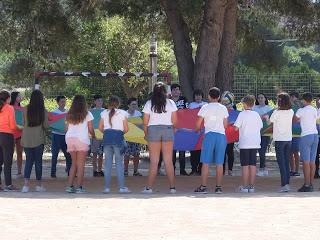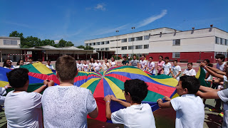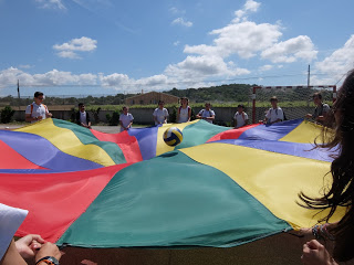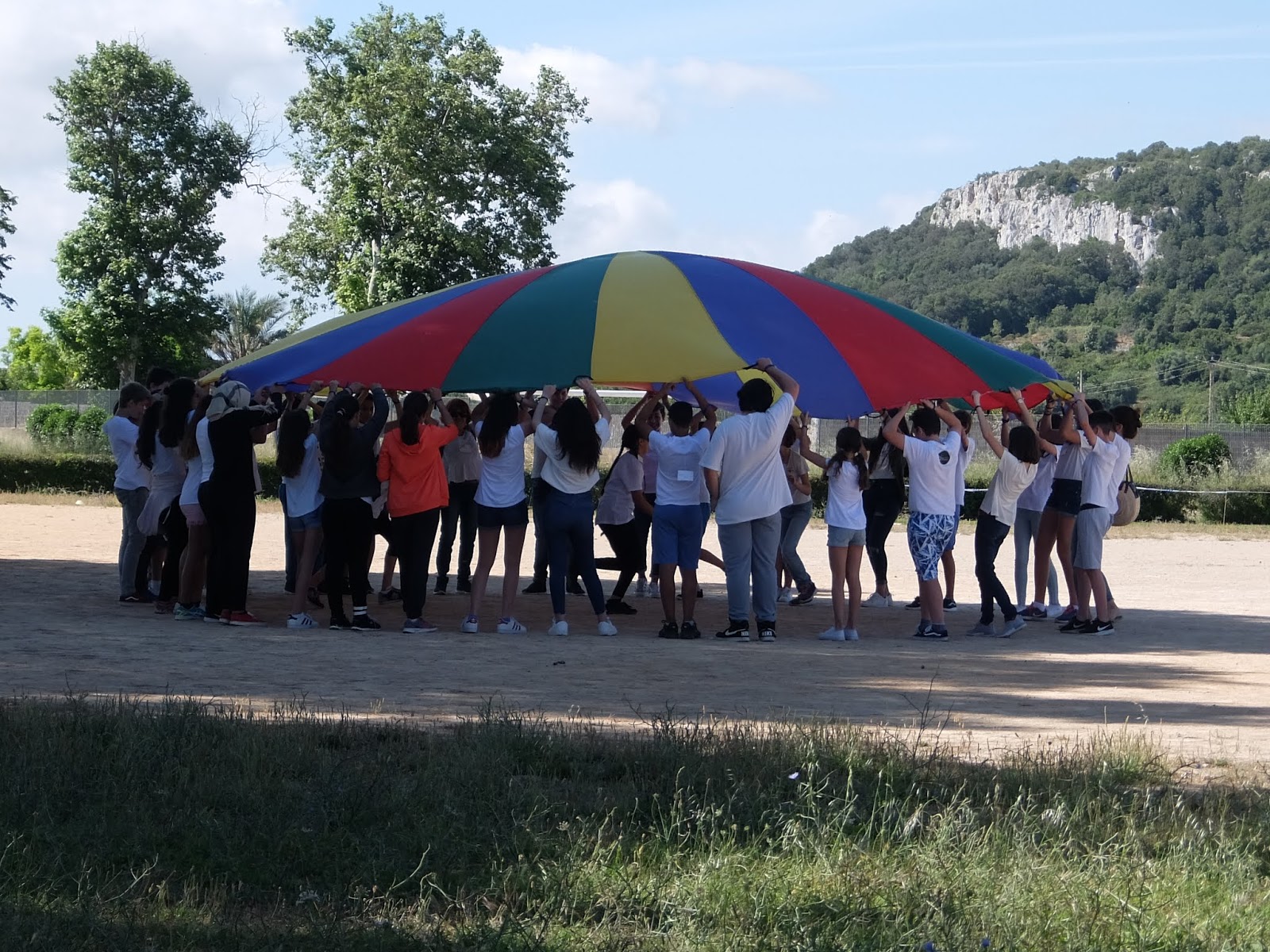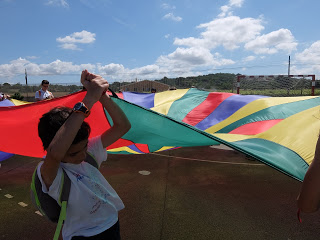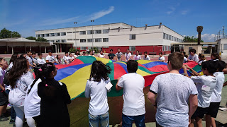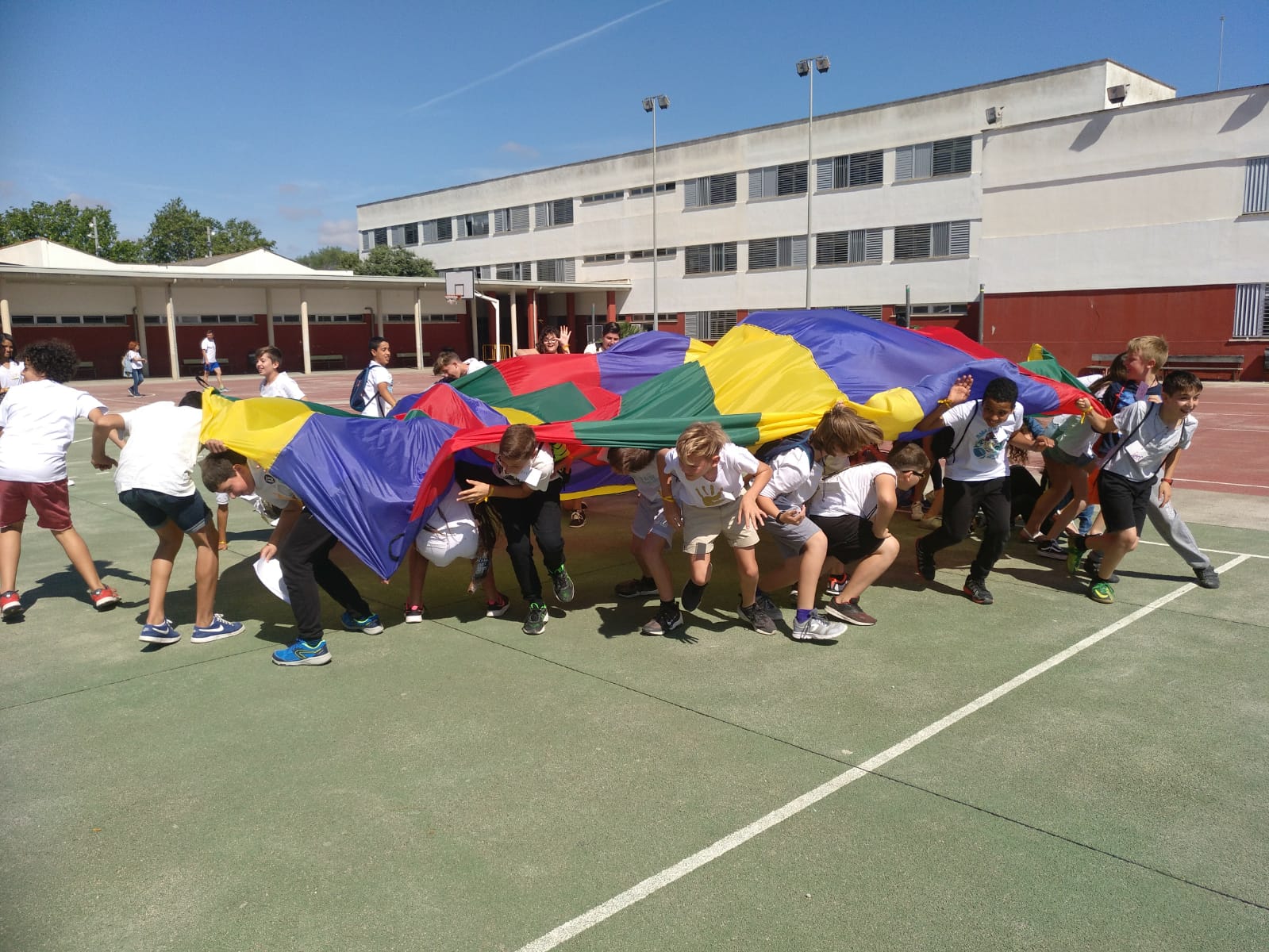Per mostrar les pistes esportives, hi havia un joc molt divertit amb el paracaigudes.