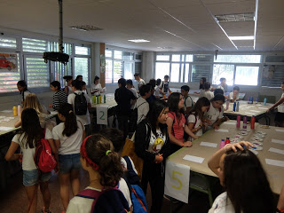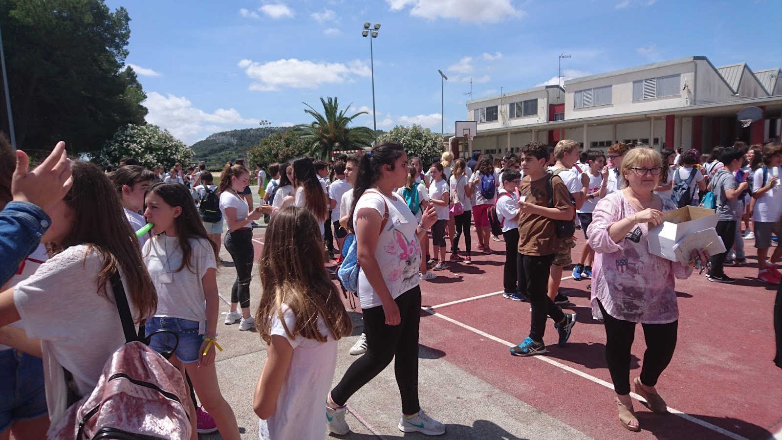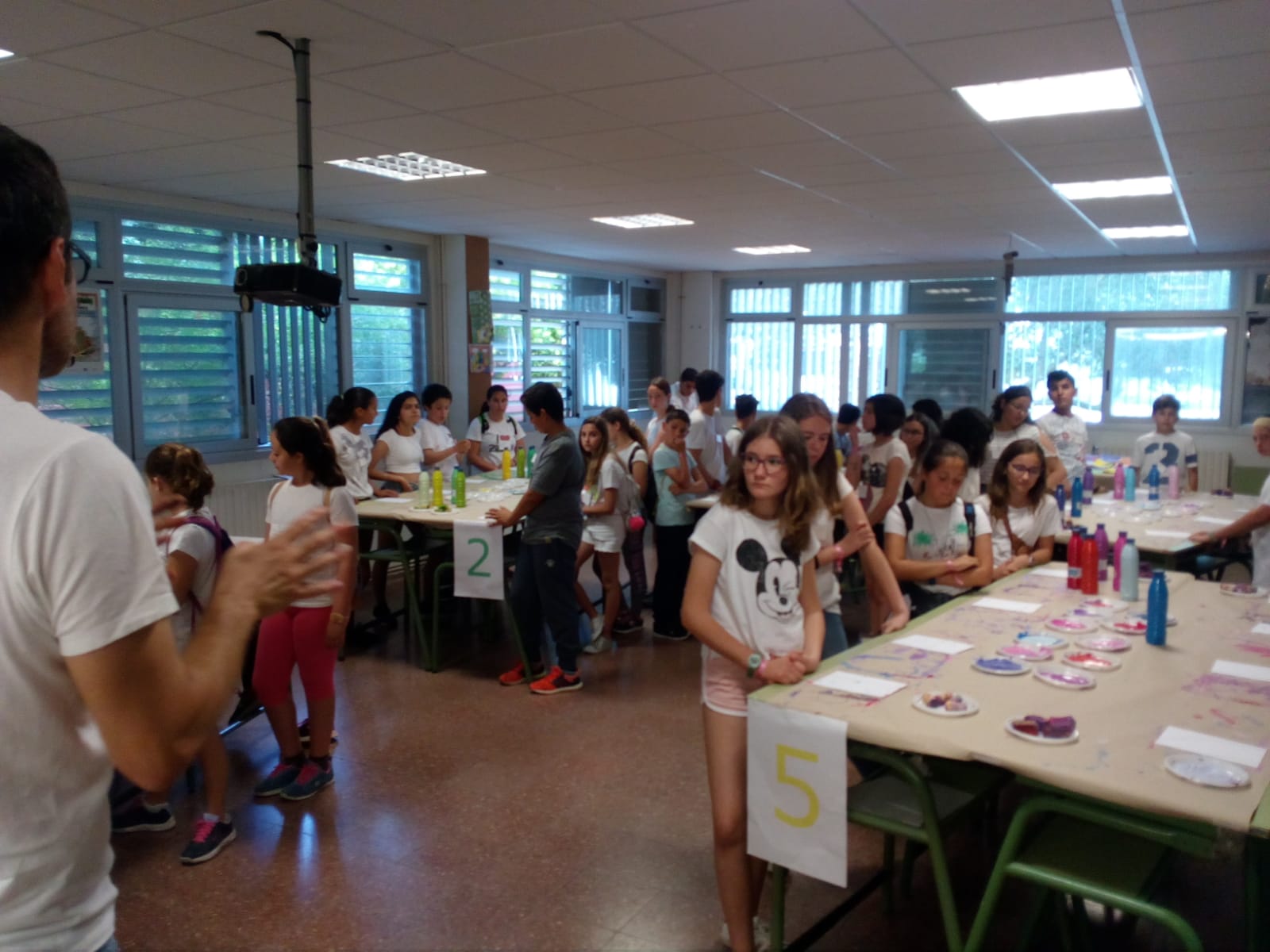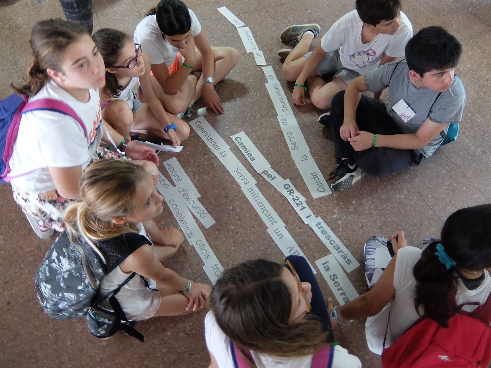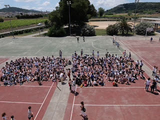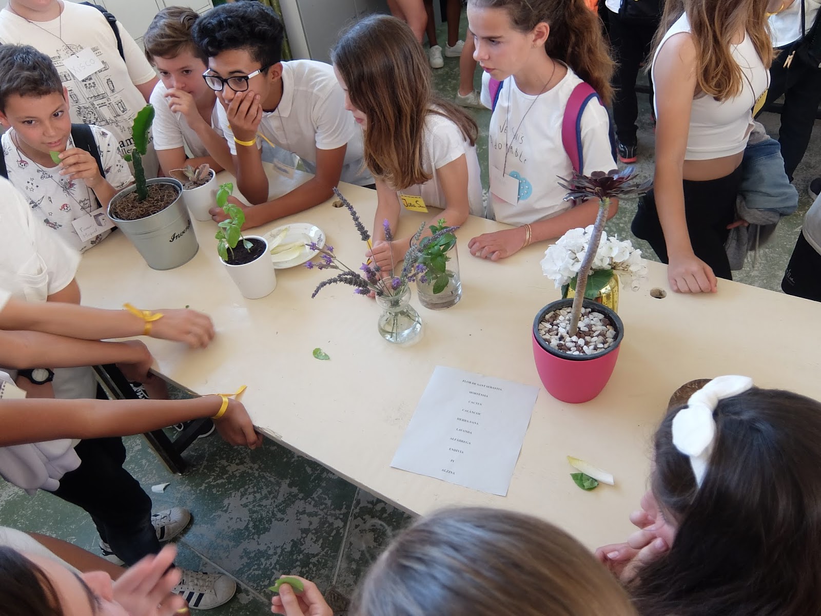 A les 10 han començat a arribar els alumnes de 6è, i s’havien d’ajuntar amb els de 1r identificant-se amb una polsera de diferents colors.
