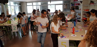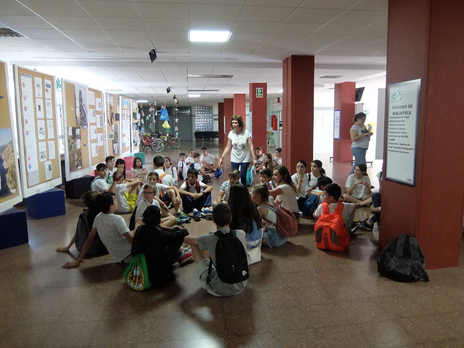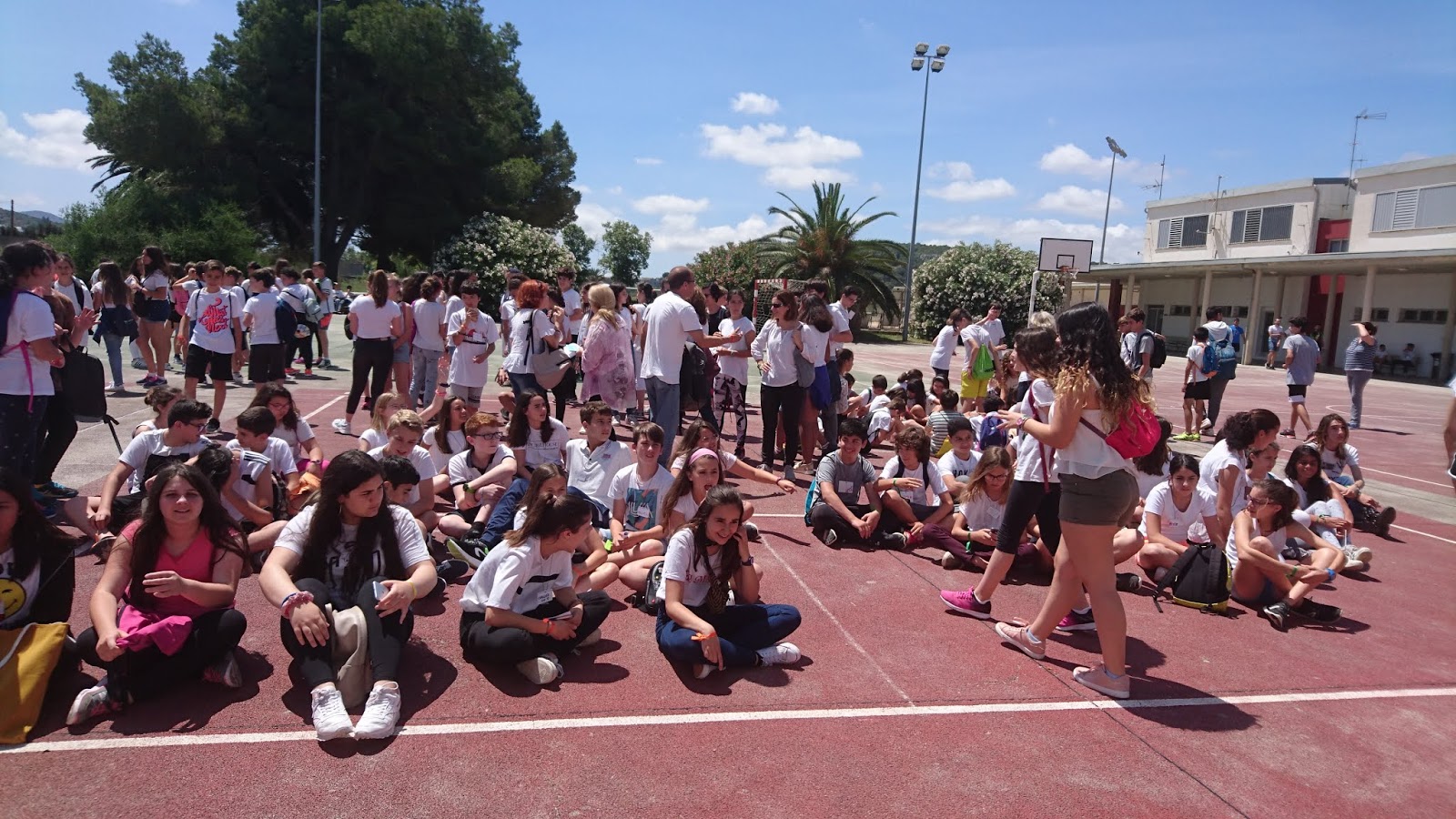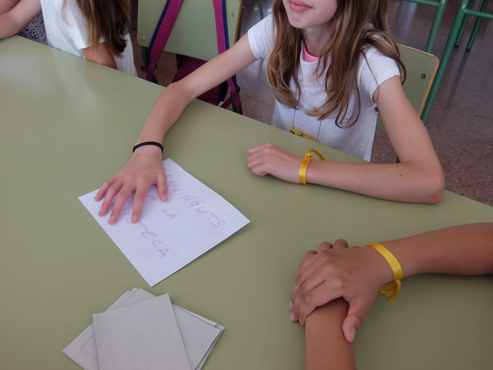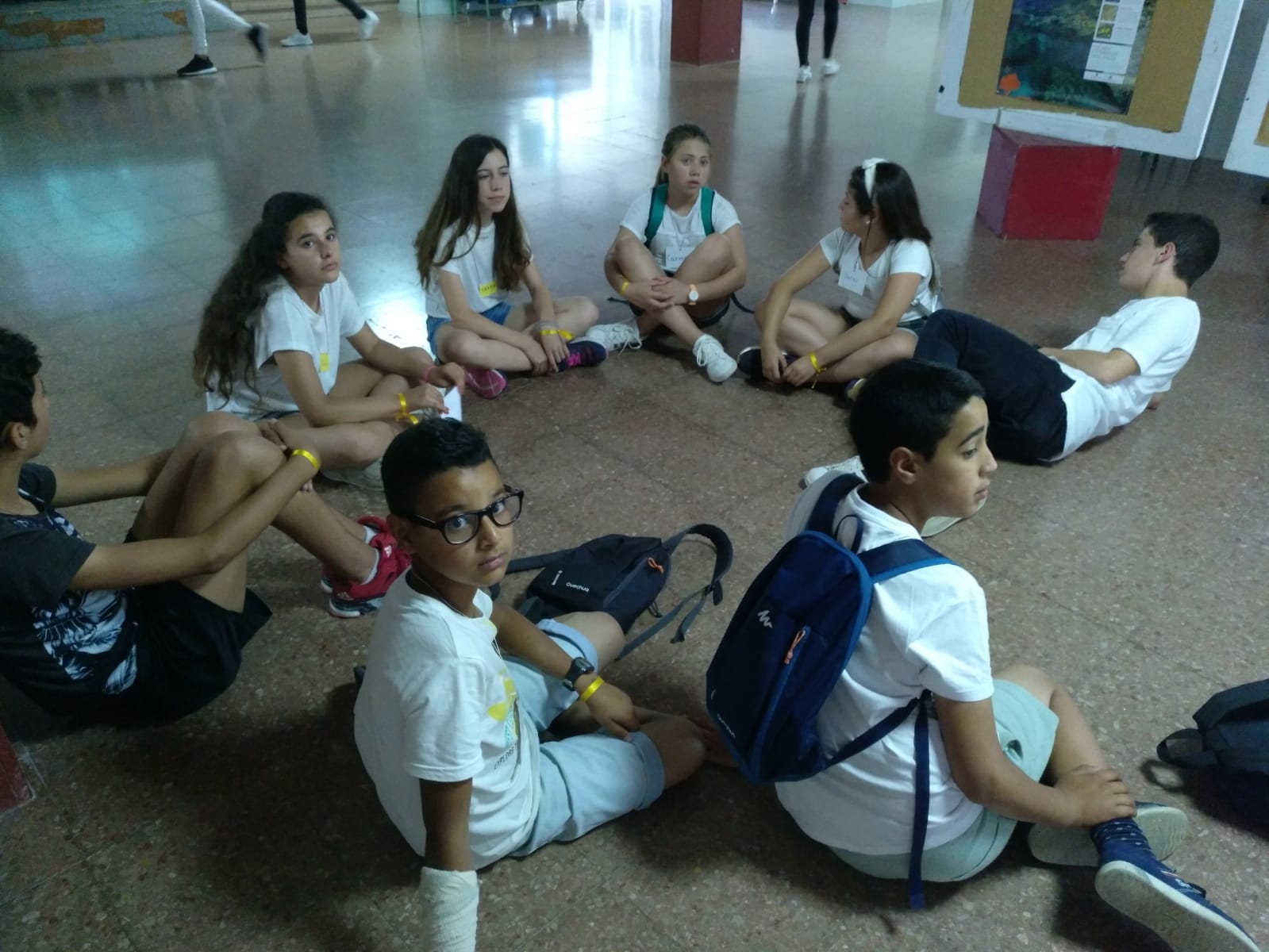 A les 10 han començat a arribar els alumnes de 6è, i s’havien d’ajuntar amb els de 1r identificant-se amb una polsera de diferents colors.
