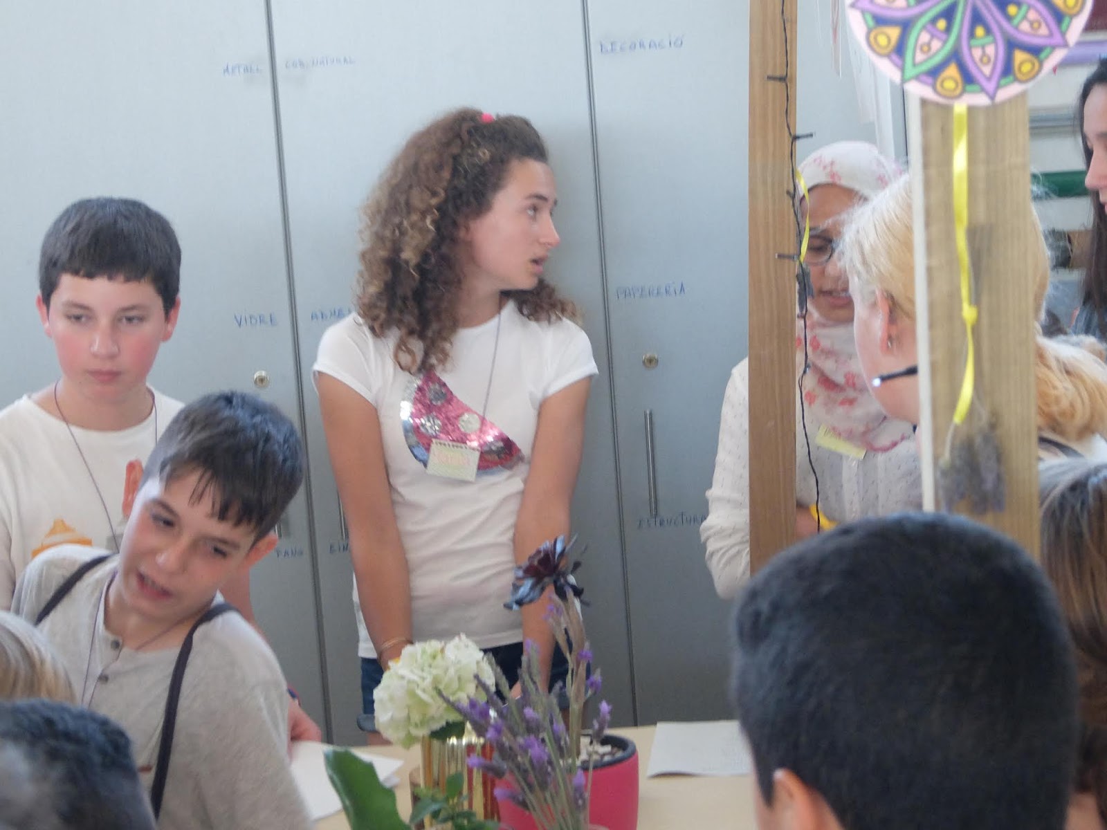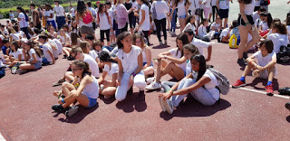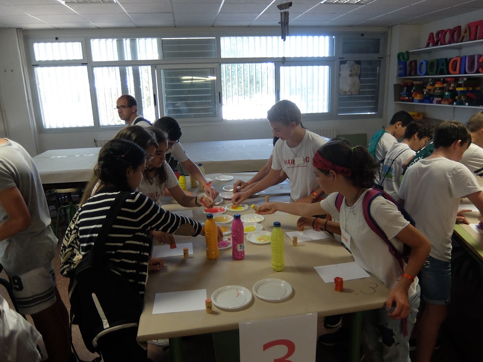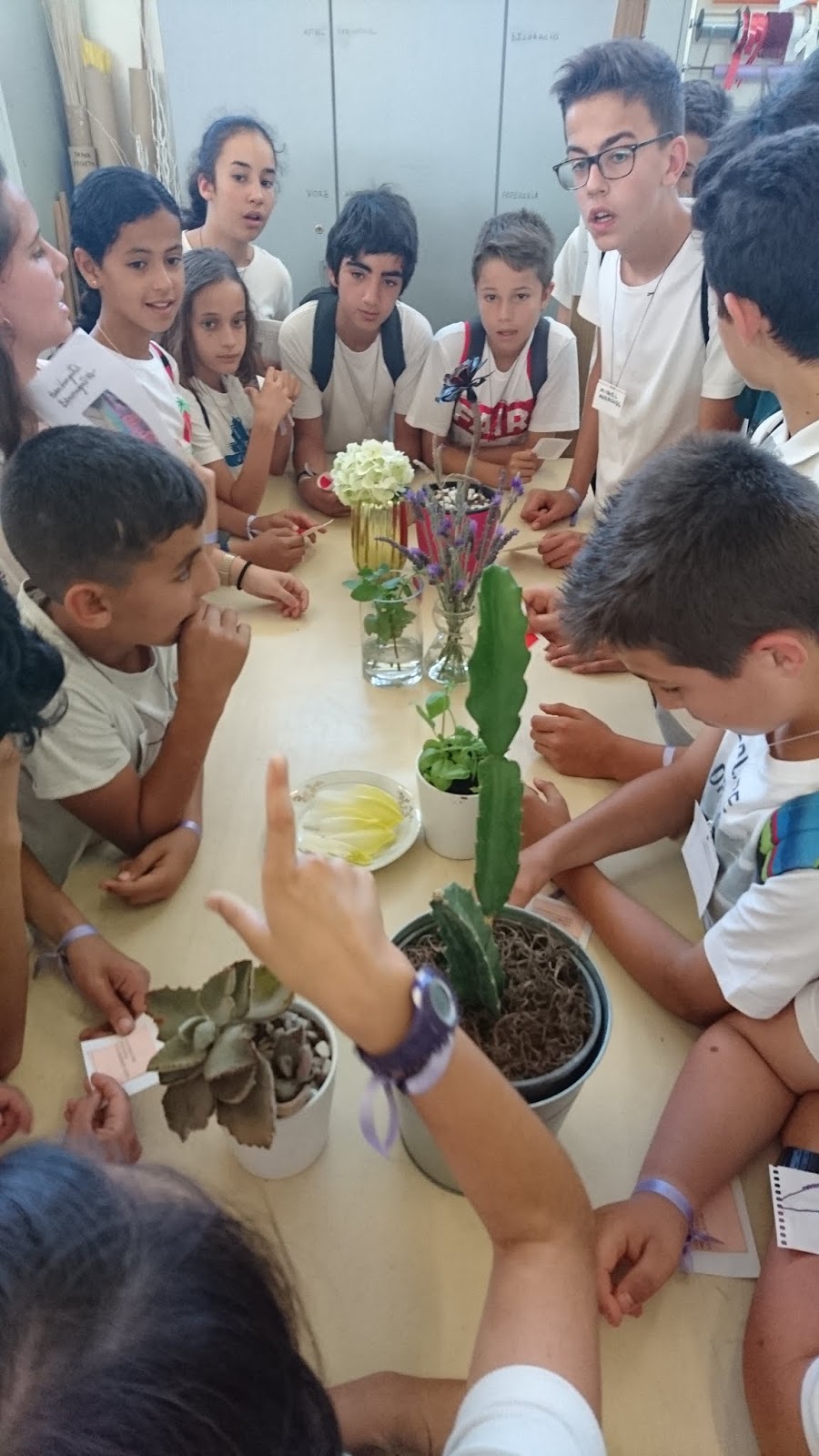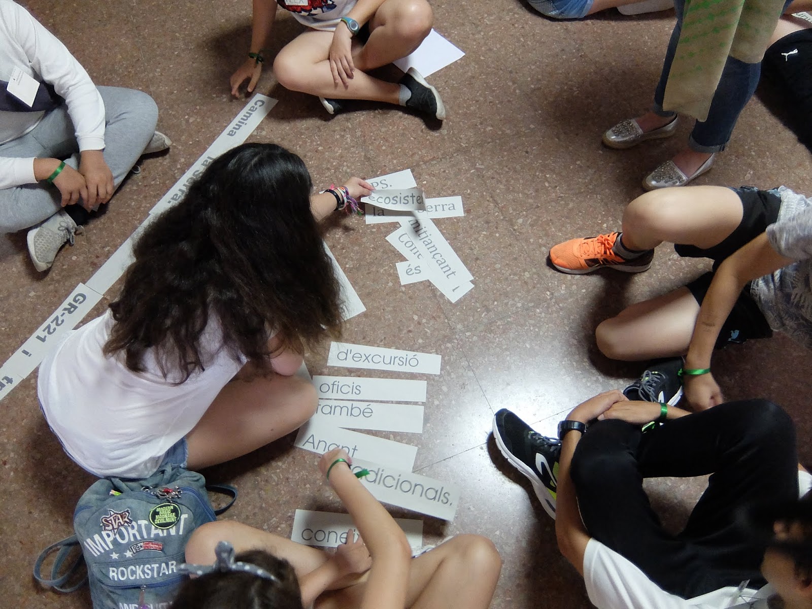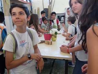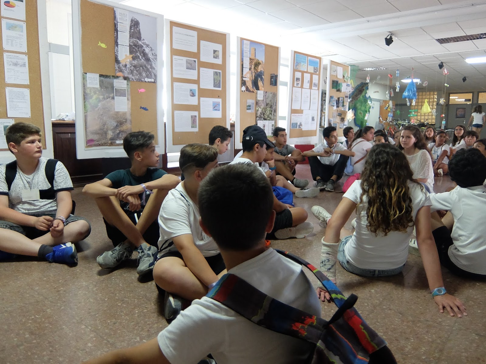 A les 10 han començat a arribar els alumnes de 6è, i s’havien d’ajuntar amb els de 1r identificant-se amb una polsera de diferents colors.