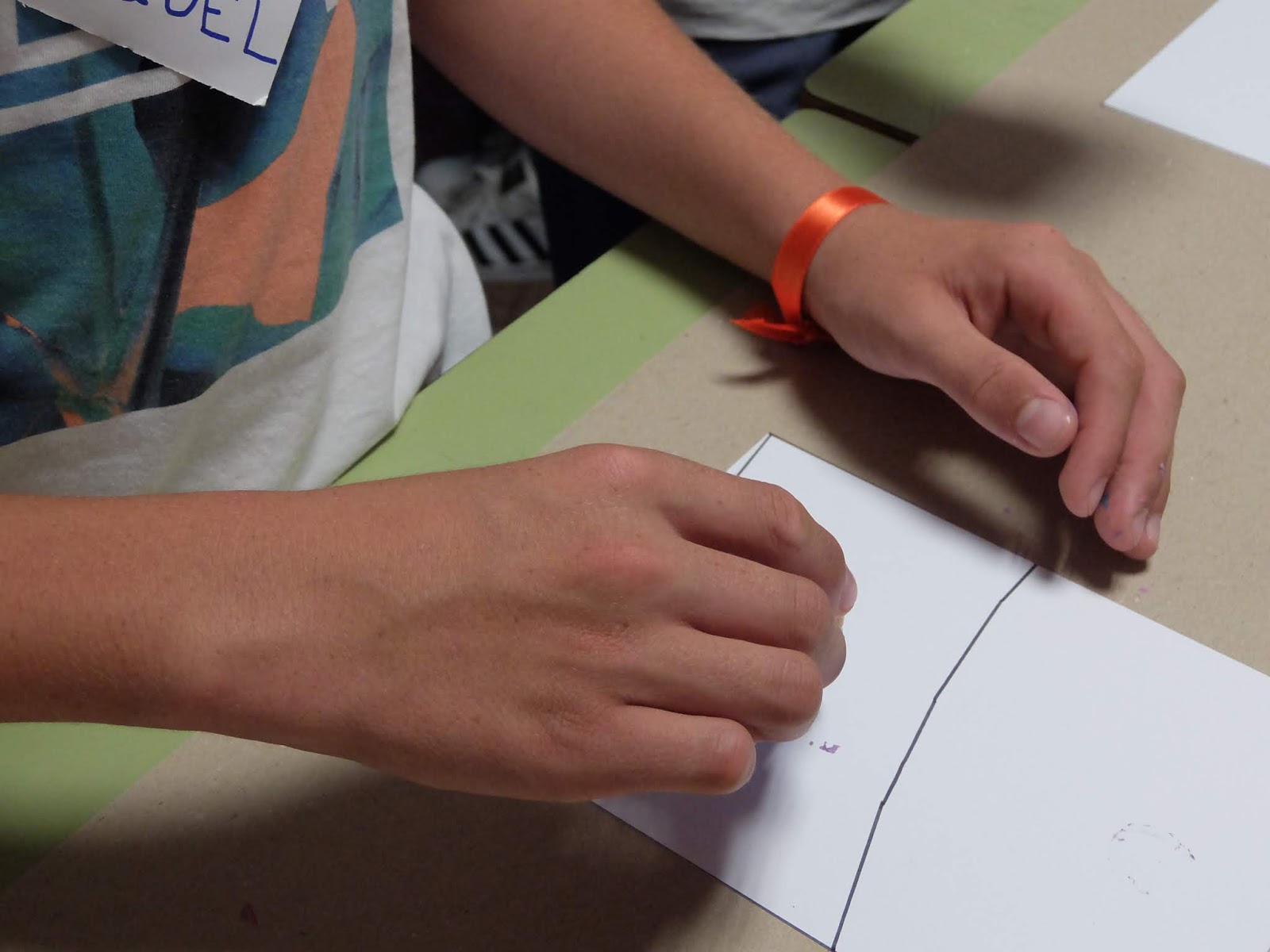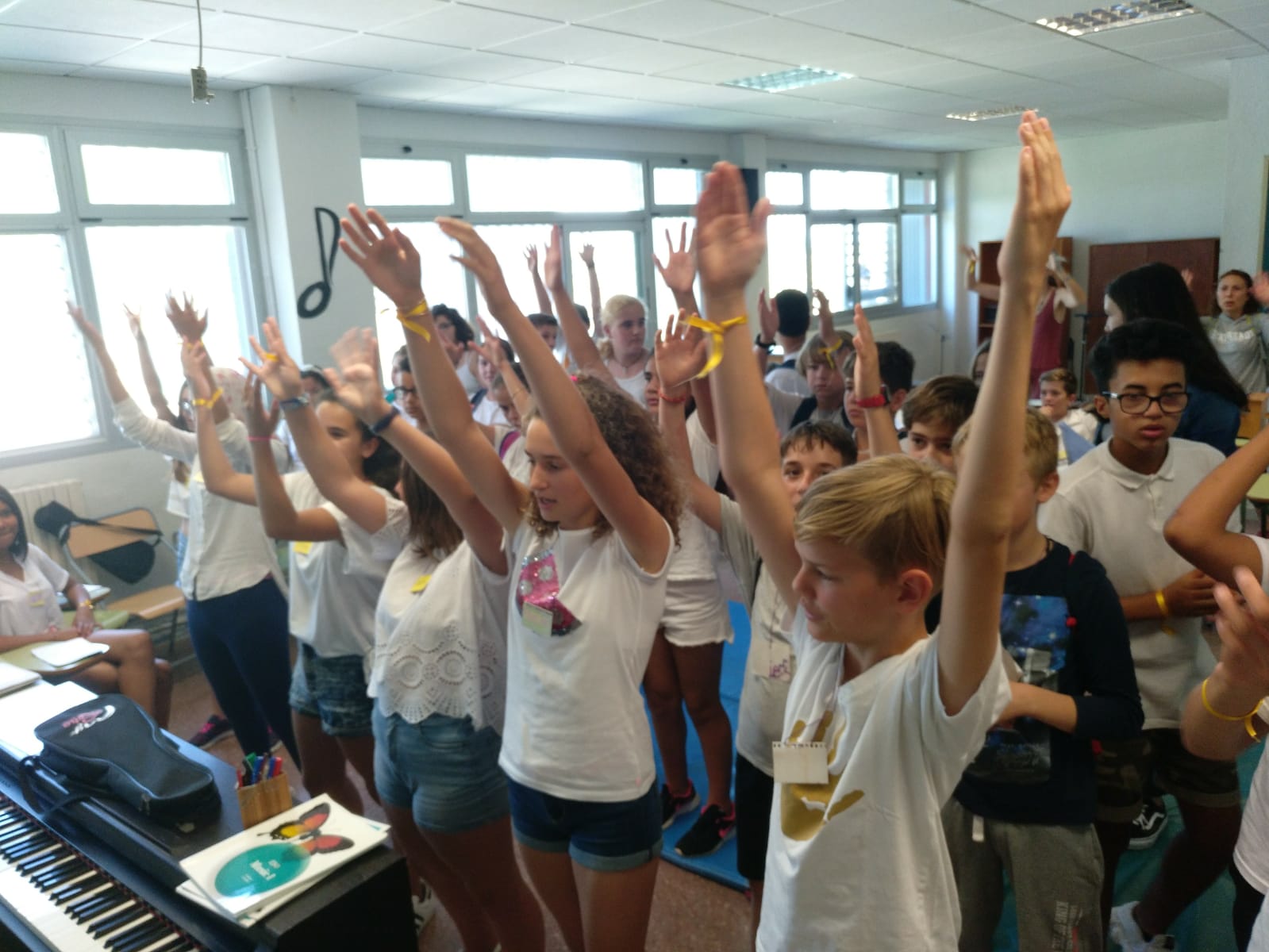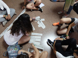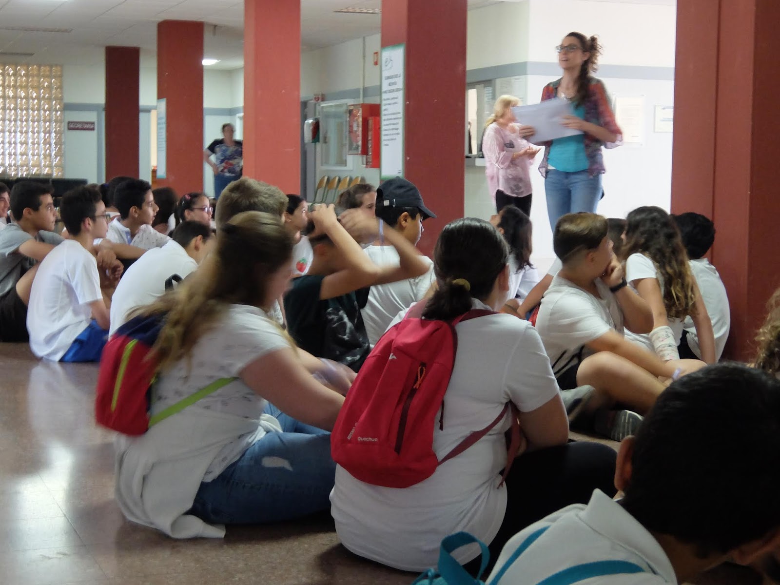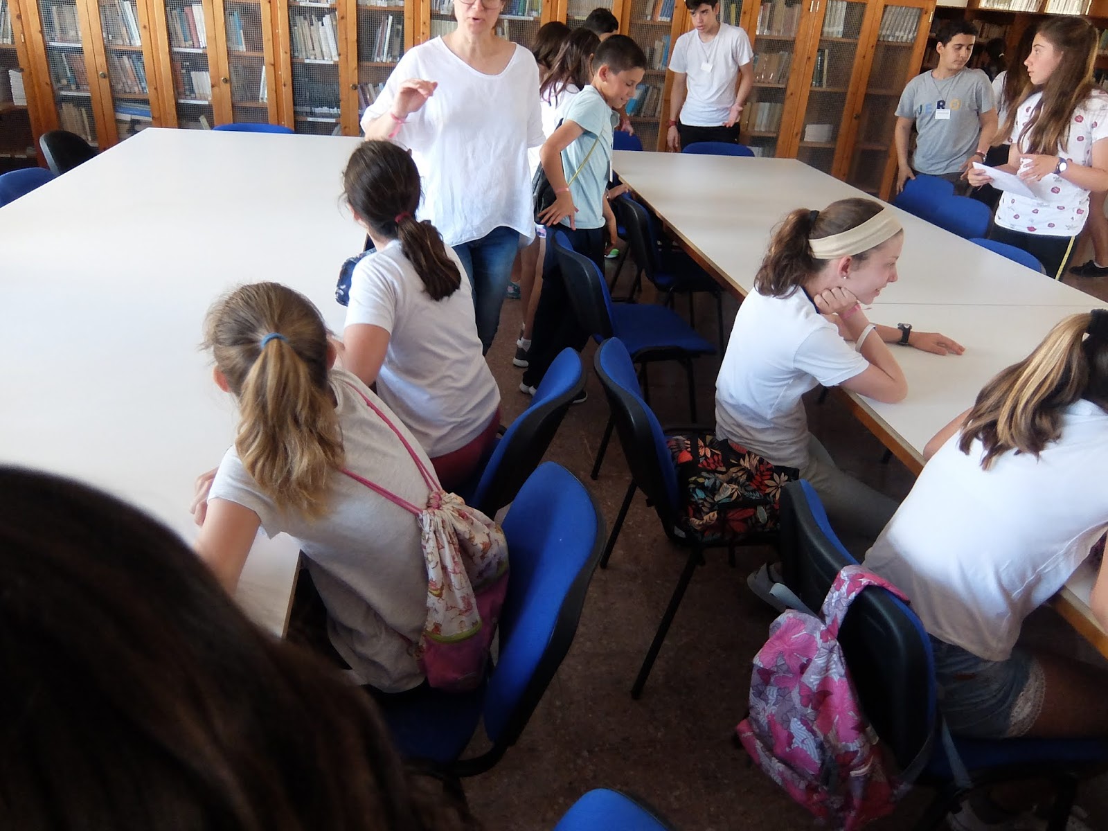 A les 10 han començat a arribar els alumnes de 6è, i s’havien d’ajuntar amb els de 1r identificant-se amb una polsera de diferents colors.