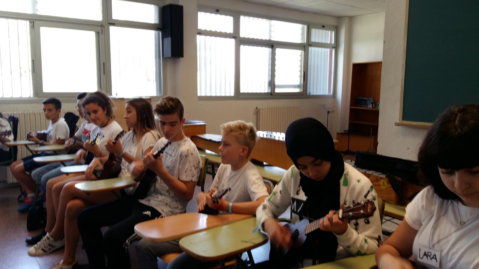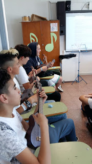 A l’aula de música ens ho hem passat beníssim amb un karaoke. Alguns alumnes fins i tot han tocat l’ukelele.