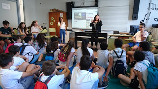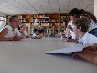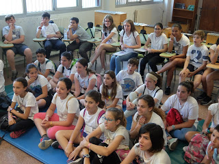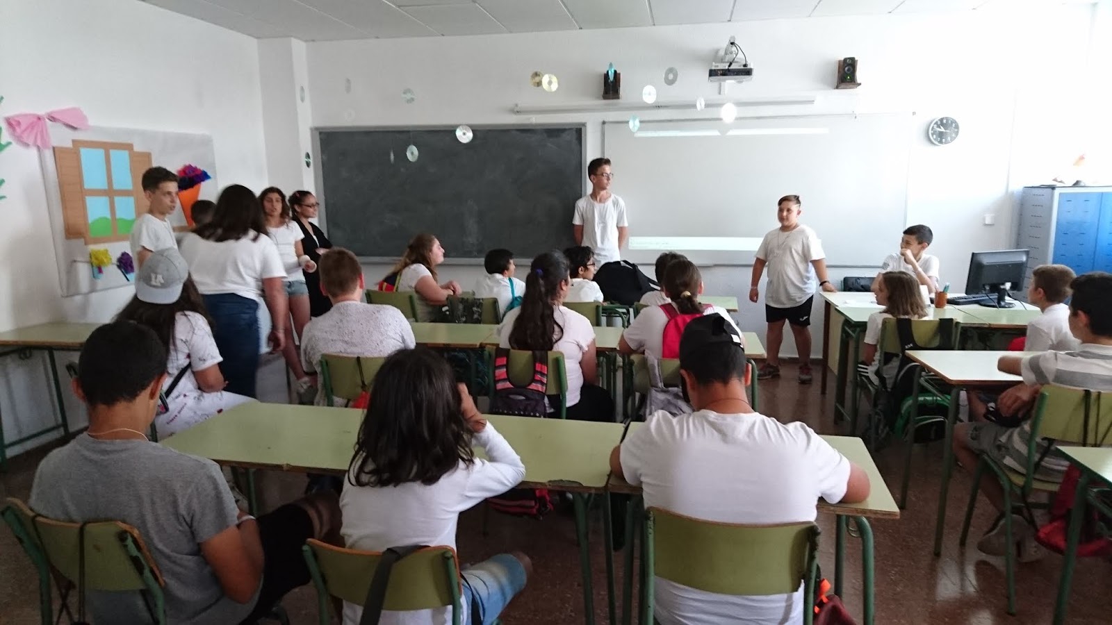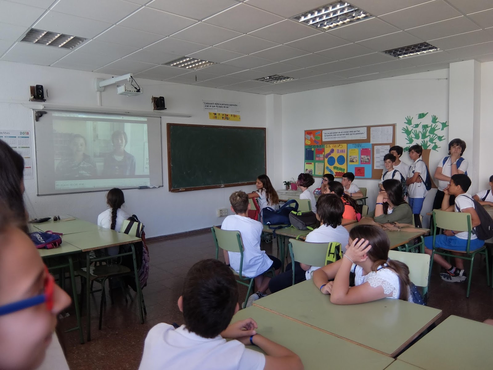 També han pogut visitar una aula de 1r d’ESO, per veure quin aspecte té, i allà cada grup ha projectat un vídeo que havia preparat amb preguntes freqüents sobre l’arribada a l’institut (i les corresponents respostes).