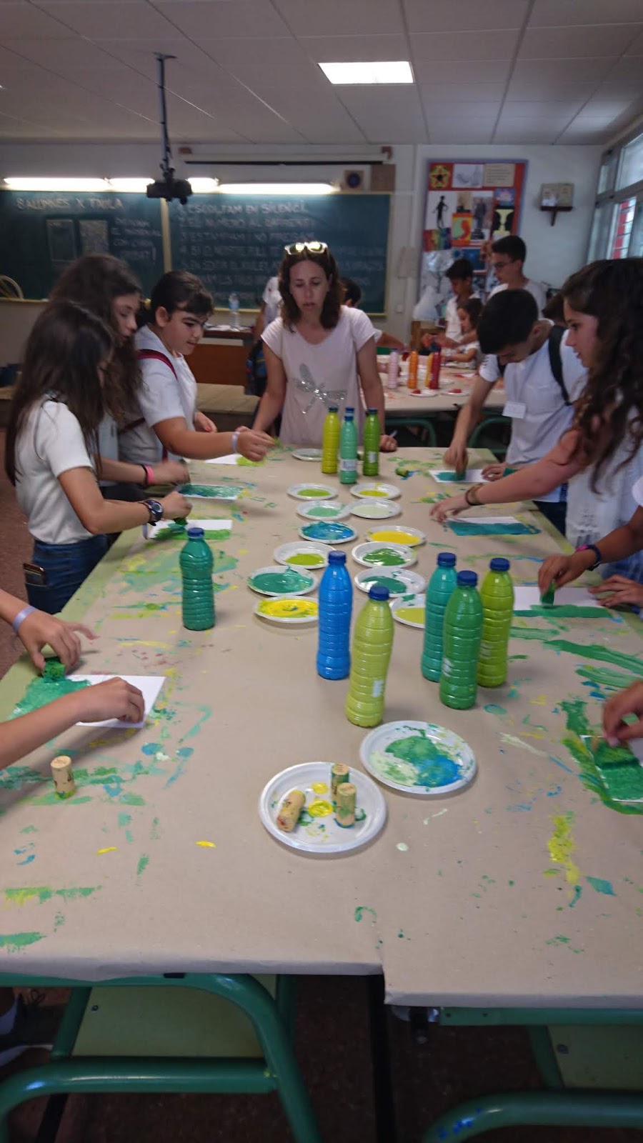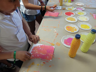 A l’aula de plàstica han vist el material i les instal·lacions preparant una estampació que formarà part d’un gran mural.